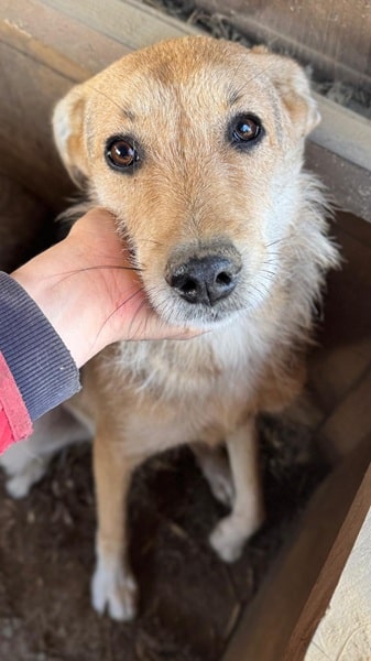 Maiti ist weiterhin neugierig, aber sehr zurückhaltend und beobachtete uns eher aus der Ferne. Sie nahm gerne unsere Leckerlies aus der Hand und ließ sich in der Hütte streicheln. Maiti taut sicherlich in einer ruhigen Umgebung schnell auf und lernt den Menschen richtig zu vertrauen. Mit ihren Kennelmitbewohnern ist sie sehr verträglich.