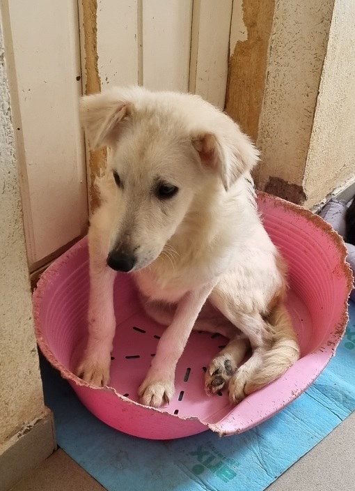 MAITO ist zwischenzeitlich in einen Außenkennel umgezogen. Man merkt ihm an, dass ihm der menschliche Kontakt fehlt. Am Gitter fühlte er sich sicher, war freudig und nahm Leckerli aus der Hand. Sobald wir in den Kennel kamen, verzog er sich lieber in seine Hütte und schnupperte nur leicht an den Leckerchen. Als wir ihm keine Aufmerksamkeit mehr schenkten, traute er sich aus der Hütte raus.