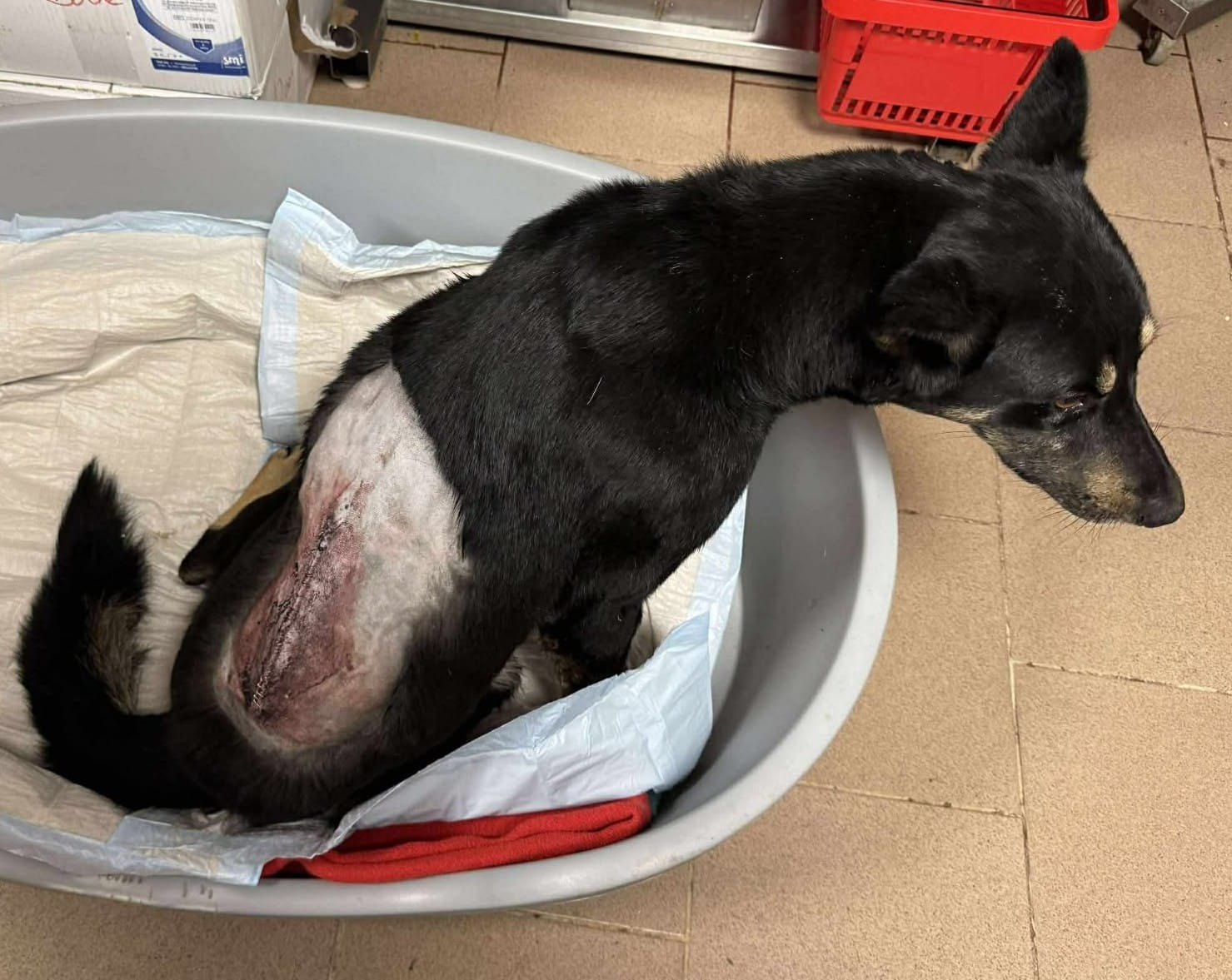 Unser Tierschützer entdeckte diese arme Seele schwer verletzt und hilflos am Straßenrand. Er nahm ihn mit und rettete ihm damit vermutlich das Leben. In der Tierklinik wurde MAJEED geröntgt und an der Wirbelsäule operiert.