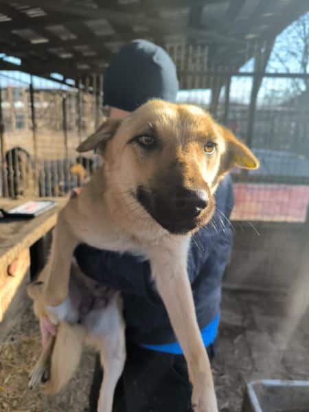 Mala wurde nun in einen Außenkennel umgesetzt. Dort freute sie sich sehr uns zu sehen und fiepte uns vor Freude entgegen.