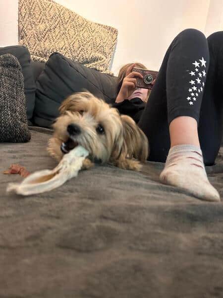 Ich fahre wunderbar im Auto mit und laufe auch schon super an der Leine, auch stubenrein bin ich, wenn man meine Signale erkennt. Treppen paaaahhh laufe ich, wie ein Profi.