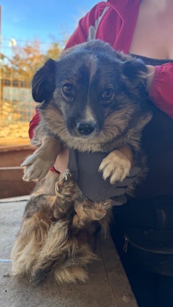 Diese kleine Hündin saß die meiste Zeit auf dem Hüttendach und schaute uns bei unserem Treiben zu. Hierbei wirkte sie in keiner Weise panisch über unsere Anwesenheit. Als wir uns dann mit ihr beschäftigten fand sie das noch ziemlich gruselig. Leckerlie wollte sie keine von uns nehmen und bei dem Streicheltest schnappte sie ganz leicht nach uns.