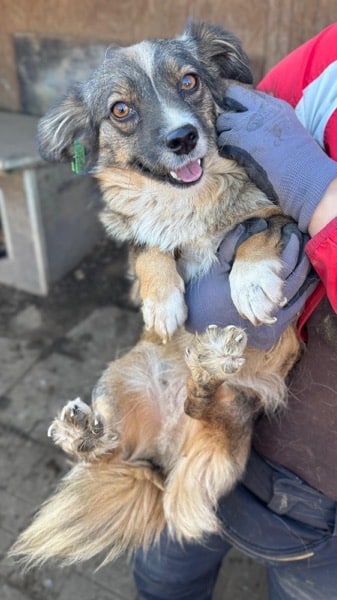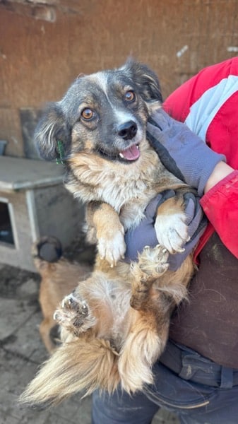 Malinda ist leider weiterhin sehr unsicher im Kontakt mit uns Menschen. Sie hat bei unserem Anblick gezittert und ist nach Möglichkeit ausgewichen. Als wir ihr den Fluchtweg versperrt hatten, haben wir Malinda hochgehoben. Sie hat dabei ordentlich um sich geschnappt, sich dann aber zumindest kurz beruhigt und sich streicheln lassen. Ebenfalls hat sie dabei vor Angst gekotet und uriniert. Hier braucht es erfahrene und souveräne Menschen. Mit Artgenossen zeigt sich Malinda verträglich und ein netter Ersthund würde ihr sicher bei der Eingewöhnung helfen.