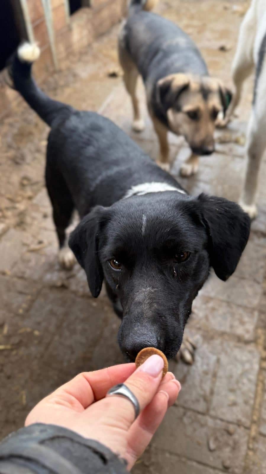 MALIO sitzt seit Welpe an im Shelter. Dennoch hat er sich seine Offenheit bewahrt und freute sich über unseren Besuch. Er kam gerne zu uns und nahm Leckerlies aus der Hand. Wenn wir uns ihm annäherten, wich er zwar zurück, doch als er zwischen Hütte und Zaun keinen Fluchtweg mehr hatte, konnten wir ihn dort gut streicheln. Er fühlte sich dabei sehr unwohl und hat sich flach auf den Boden gelegt, aber keinerlei Gegenwehr gezeigt. Wir denken, dass MALIO wegen seiner Neugierde gute Voraussetzungen hat, in einem eigenen Zuhause schnell aufzuztauen.