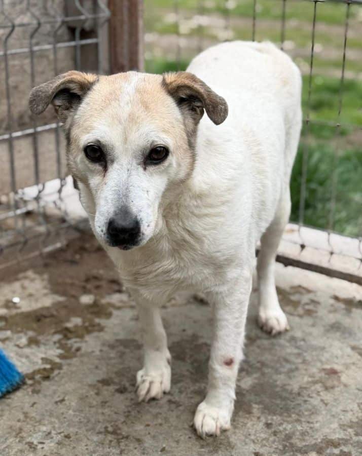 Update 09/24: Mana lebt jetzt mit vielen kleineren Junghunden zusammen und macht das sehr gut. Sie versteht sich dort mit den jungen Hüpfern und wirkt nicht gestresst. Wir konnten sie leider nicht anfassen, aber sie nahm zumindest schon mal Leckerlies vom Boden. Ein ruhiger Alterssitz wäre sicher ganz toll für die süße Dame.
