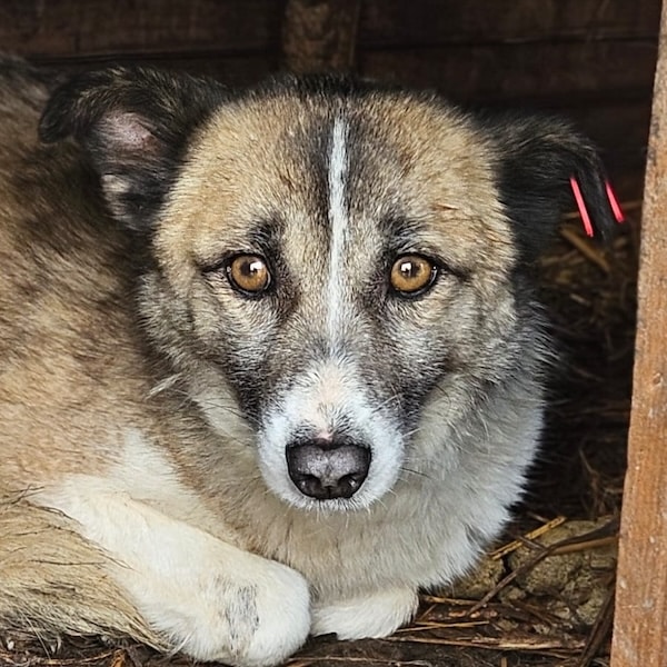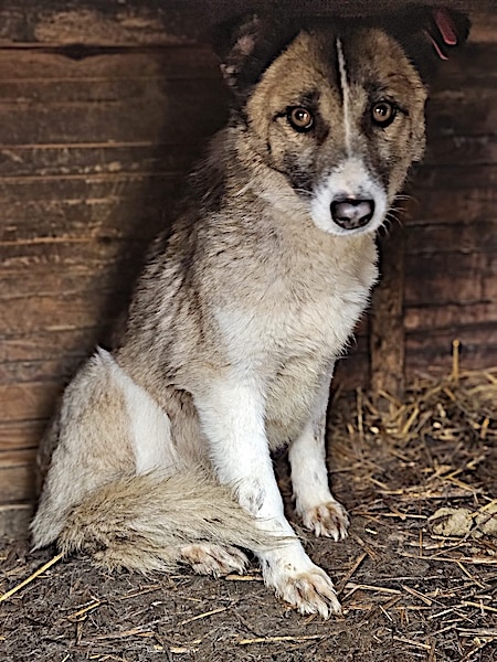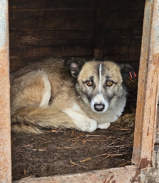 MANOLINA blieb bei unserem Besuch lieber in der Hütte und hielt sich aus dem Trubel ihres Kennels raus. Als wir uns ihr zuwandten, nahm sie gerne unsere Leckerlis aus der Hand. Dabei konnten wir sie auch vorsichtig an der Schnauze berühren. In einer anderen Umgebung mit verständnisvollen Menschen, die ihr Zeit geben Schritt für Schritt in ihrem Tempo anzukommen, sollte sie noch zutraulicher werden. Ein netter Ersthund, an dem sie sich orientieren kann, würde ihr die Eingewöhnungszeit sicher erleichtern.