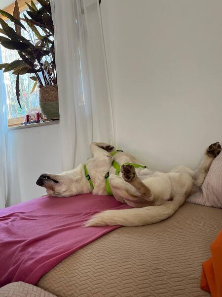 Marcelino ist seit Dezember 2025 auf seiner Pflegestelle und hat vorher zwei Jahre im Shelter verbracht, nachdem er gemeinsam mit einer anderen Hündin auf der Straße aufgelesen wurde. Wir können uns nicht vorstellen, wie es diesem sanften Wesen im Shelter ergangen ist, aber wir spüren seine Dankbarkeit, nun in Wärme und Geborgenheit zu leben, jeden Tag. Auf seiner Pflegestelle zeigt sich der wunderschöne kastrierte Rüde noch sehr unsicher, aber immer wieder bereit und willig neue Dinge kennenzulernen. Er ist seit Tag 1 stubenrein und kommt in nahezu jeder Situation zur Ruhe. Die sanfte Maus ist wahnsinnig menschenbezogen, für ihn ist das Beisammensein mit seinem Rudel sehr wichtig und er genießt es in vollen Zügen. Alleinbleiben kann er aktuell noch nicht, aber es wird fleißig geübt. Das wird aber sicherlich einige Zeit brauchen. Im Haus zeigt sich Marcelino ruhig und entspannt, auch Besuch und Trubel machen ihm gar nichts aus. Er legt sich dann in sein Körbchen und schläft sogar ein. Er genießt das Beisammensein mit Menschen sehr, muss dabei aber nie im Mittelpunkt stehen. Der Süße wird gern gekrault, neigt aber aktuell noch zum schnappen, wenn es ihm zu viel ist. Männer findet er manchmal noch etwas gruselig, aber wenn er sie kennenlernt, wird auch hier gemeinsam gekuschelt. Für ihn ist wichtig, dass seine Grenzen, die er ganz toll kommunizieren kann, gewahrt und erkannt werden, so dass Kinder im neuen Haushalt im Optimalfall schon etwas älter sind.