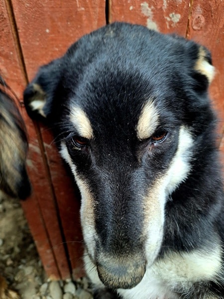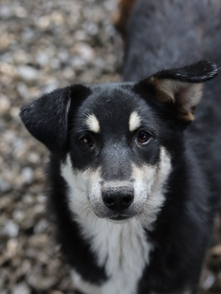 Diese bezaubernde Hündin fällt sofort durch ihre wunderschöne Gesichtszeichnung auf – ein Ausdruck von Sanftheit und stillem Vertrauen.