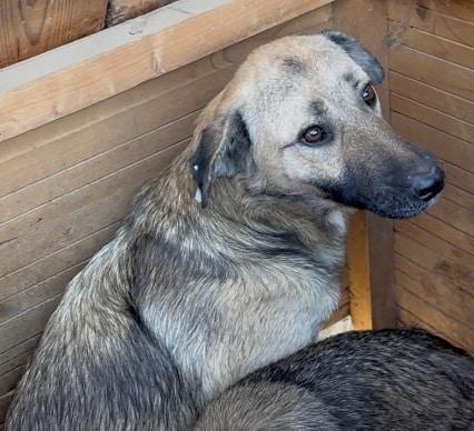 MARLENA ist weiterhin eine freundliche und interessierte Hündin, die immer in unserer Nähe war. Sie nahm Leckerchen aus der Hand und ließ sich leicht an der Schnauze berühren. Für mehr fehlte ihr leider noch der Mut. Zum Zeitpunkt unseres Besuchs war jedoch eine Unruhe in diesem Bereich des Shelters zu spüren, was sie weiter verunsicherte. In einer ruhigeren Umgebung und mit entsprechend Zeit könnte sie sicherlich mehr Vertrauen zum Menschen fassen und weiter auftauen. In ihrem Kennel zeigt sie sich weiterhin verträglich.