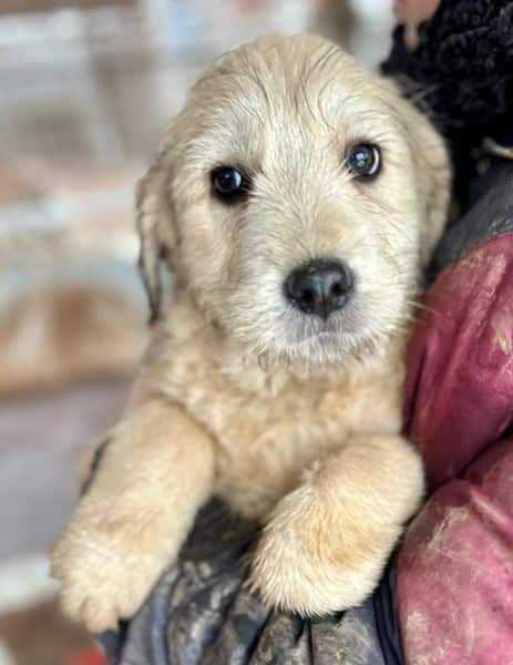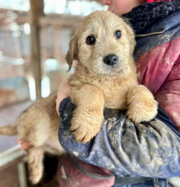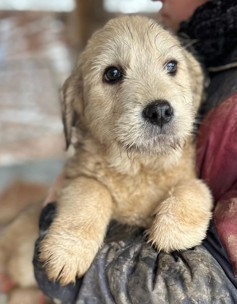 | Wesen & Zutraulichkeit (Character & Trustworthiness) | welpentypisch (typical for puppies), verspielt (playful), offen (open), freundlich (friendly), neugierig (curious), überall anfassbar (touchable everywhere) |