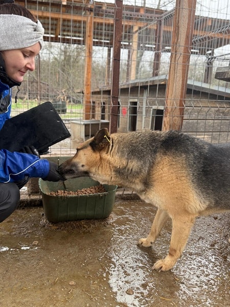 MATS reagiert weiterhin sehr neugierig auf Menschen und zeigte sich als freundlicher, aber immer noch etwas unsicherer Rüde. Futter nimmt er sehr gerne aus der Hand, weicht aber noch zurück, wenn man ihn streicheln möchte. Mit mehr Zeit hätte er sicher Berührungen zugelassen.