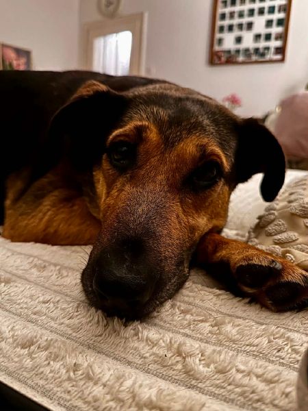 Die liebe MAXIMA stieg bereits gut gelaunt Ende Juli 2025 aus dem Transporter und freut sich seit dem ihres Lebens hier auf ihrer Pflegestelle in Deutschland.