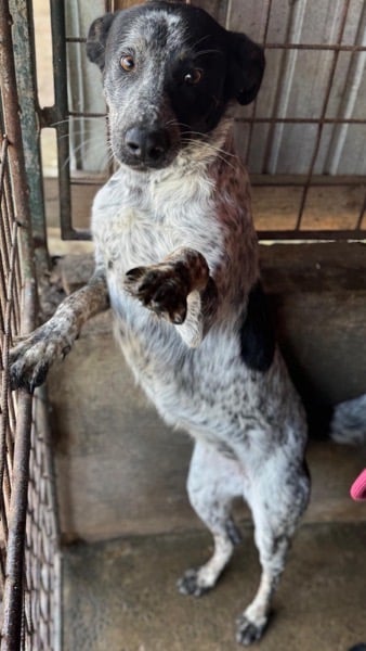 Dieser Gute-Laune-Hund freute sich sehr über unseren Besuch. Die hübsche Hündin zeigte sich menschenbezogen, anfassbar und sehr zutraulich. Sie war dabei stets aufmerksam und sehr interessiert am Kontakt mit uns. Die angebotenen Leckerchen nahm sie ohne zu zögern ganz selbstverständlich aus der Hand. Ein bewundernswerter Hund, da nicht einmal die triste Enge des Vetkennels ihr die Lebensfreude nehmen konnte.