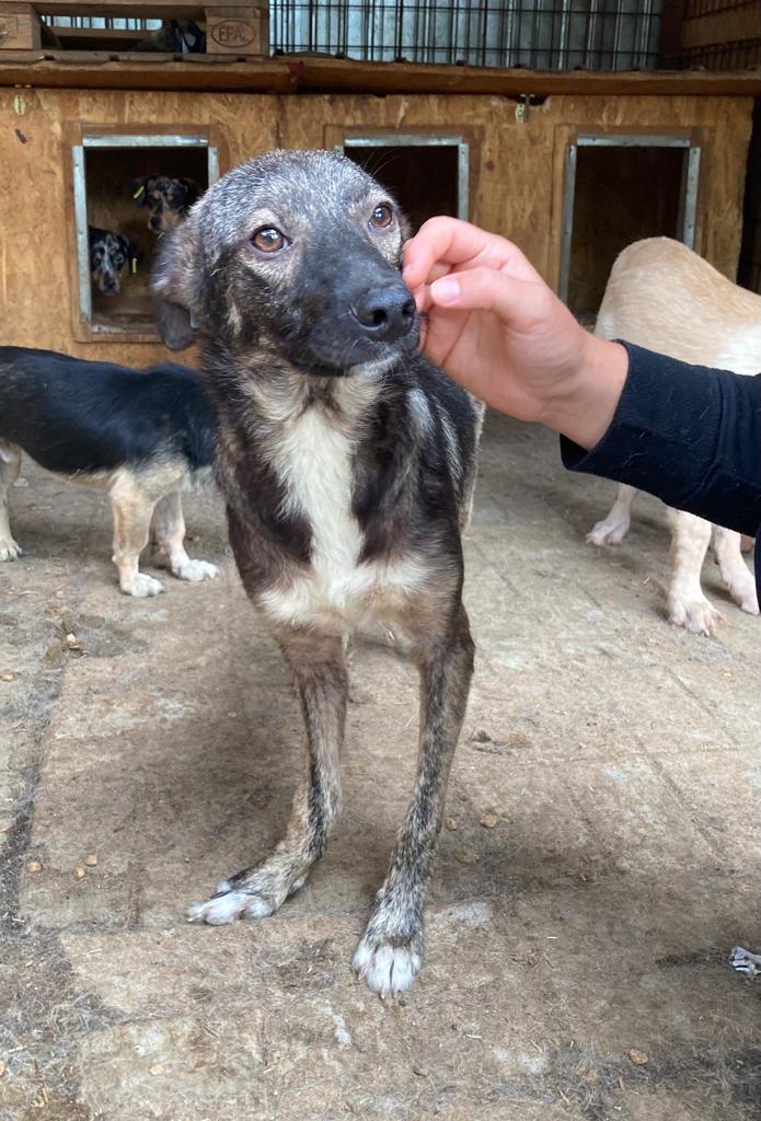 als wir uns dem Kennel näherten, bellte MELLON zunächst aus Unsicherheit; beim Betreten des Kennels zeigte er sich jedoch sofort sehr aufgeschlossen und war der Zugänglichste und Verschmusteste Hund der Gruppe