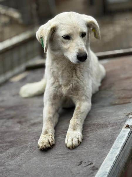 eine knuffige, süße Maus die ganz neugierig auf uns wartete. Als Einzige im Kennel kam sie ganz mutig nach vorne und erschnüffelte uns. Als wir uns zu ihr gesellten wurde sie etwas unsicherer aber sie wich uns nicht von der Seite. Zaghaft nahm sie unsere Leckerlis und fing an Gefallen an uns zu finden, doch zum Streicheln fehlte noch der Mut. Diese süße Hündin ist in ihrer Art einfach goldig.
