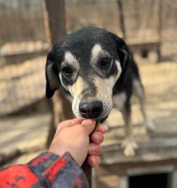 Melody freute sich sehr über unseren Besuch und nahm auch gerne unsere Leckerchen aus der Hand, dabei konnten wir sie leicht an der Nase berühren. Für mehr fehlte ihr noch der Mut. In der Hundegruppe fühlt sie sich sicherer und wir könnten uns vorstellen, dass sie in ihrer Familie mit souveränem Ersthund weiter auftauen wird und zu einer treuen Begleiterin wird.