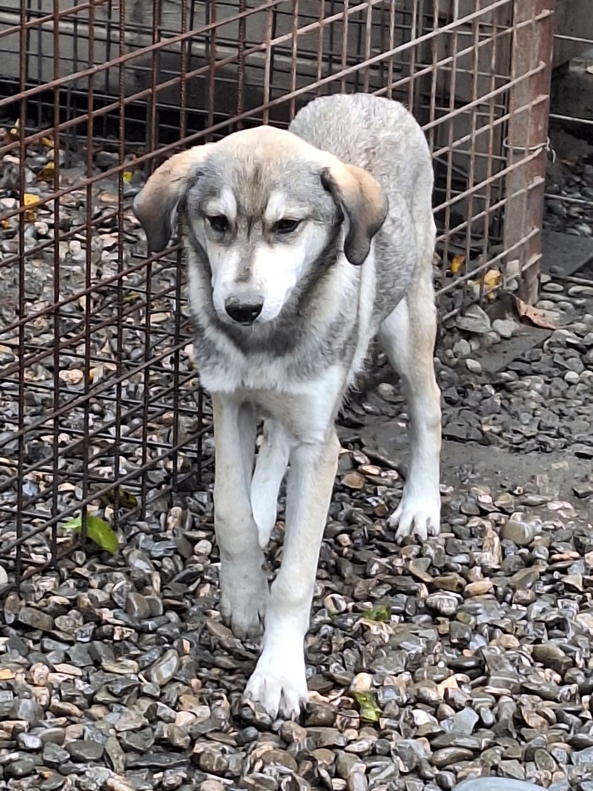 Dieser hübsche Rüde war anfangs sehr zurückhaltend und schüchtern. Mit der Zeit taut er jedoch langsam auf und zeigt vorsichtiges Interesse an Menschen. Trotz seiner Zurückhaltung spürt man seine sanfte und liebevolle Art.