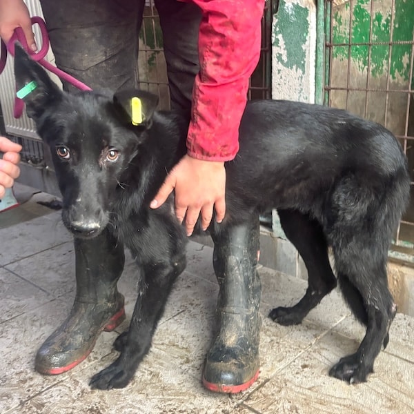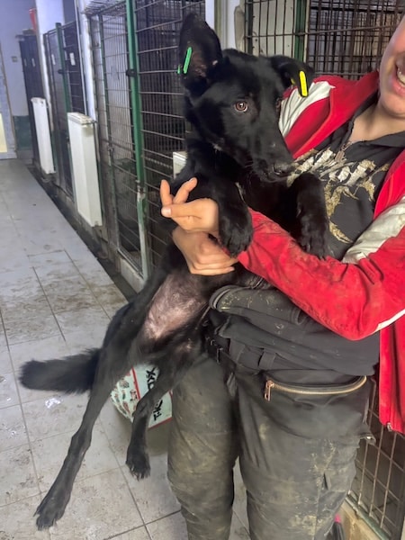 So jung und gerade noch mal dem Tod von der Schippe gesprungen. Sie war im Kennel vor uns geflüchtet, aber wir konnten sie dann einfach aus dem Kennel tragen. Mehr können wir noch nicht berichten, aber haben sie natürlich auch nicht mehr weiter gestresst. Erstmal überleben und darauf hoffen, dass sie jemand sieht.