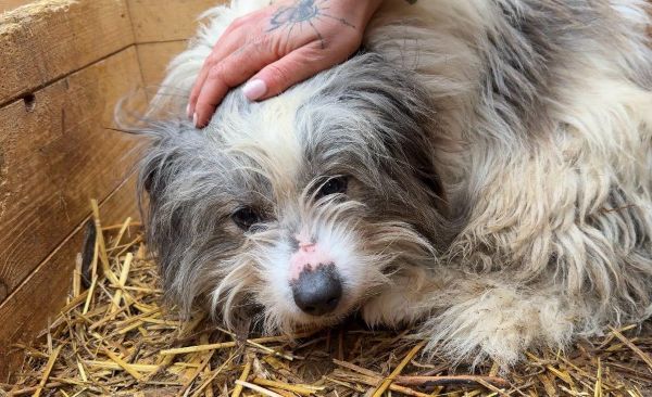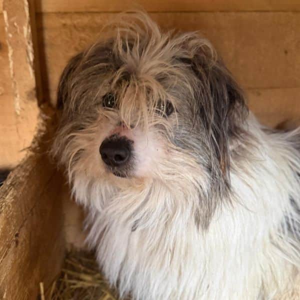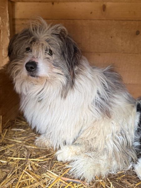 Diese Hündin wurde erst vor einer Woche von ihrem Besitzer abgegeben und trägt noch ihr Halsband. Die ganze Situation im Shelter überfordert sie sehr – sie versteht die Welt nicht mehr. In ihrer Hütte lässt sie sich jedoch anfassen und zeigt dabei ihre sanfte, zurückhaltende Art. Ihr Fell ist stark verfilzt, was deutlich macht, dass sie lange nicht die Pflege bekommen hat, die sie verdient. Wir wünschen uns ein liebevolles Zuhause, in dem sie endlich gesehen, umsorgt und behutsam aufgefangen wird – ein Ort, an dem sie Sicherheit, Wärme und Zuwendung erleben darf. Sie lebt in einem gemischten Rudel und scheint verträglich.