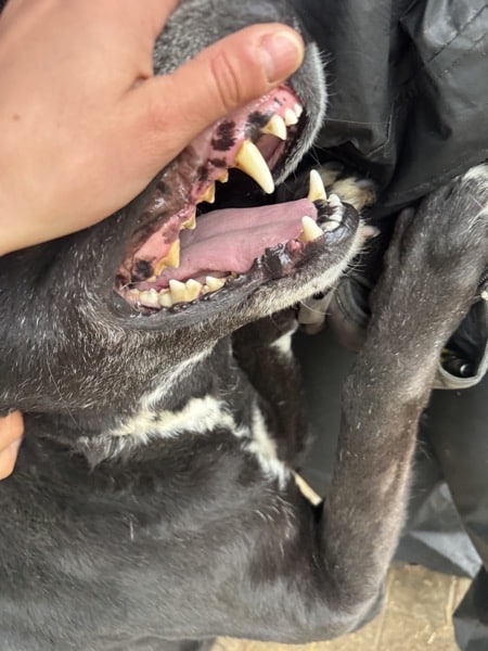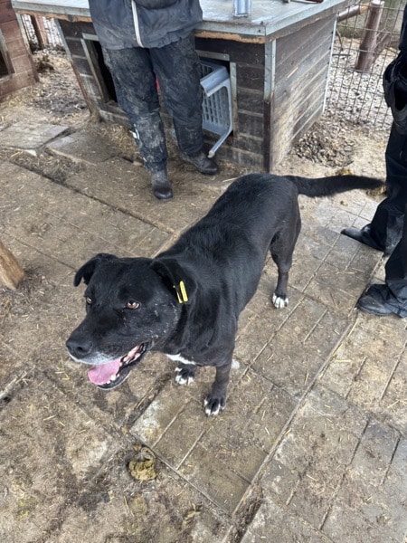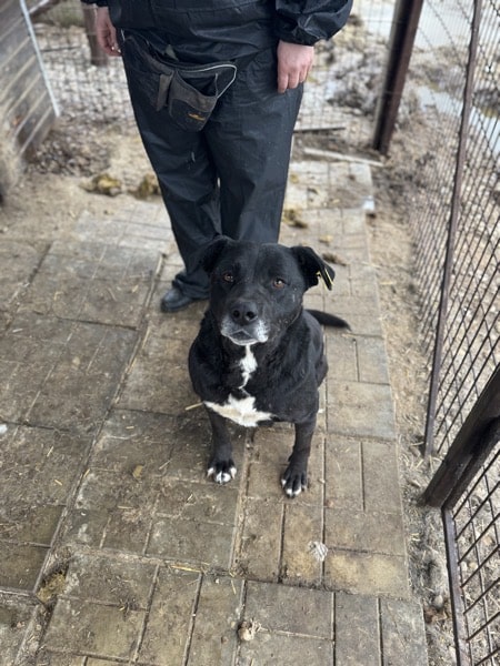 Die super nette und sehr menschenbezogene MEVIA begrüßte uns schon überschwänglich am Kenneltor, als wir mit einem Team aus Frauen und einem Mann ihren Kennel betraten. Man merkte sofort, dass der Mensch für sie ALLES ist. Sie war trotz ihrer etwas dynamischen Art stets freundlich und beruhigte sich recht schnell, sodass sie sich in Ruhe überall streicheln ließ. Da sie eine größere Hündin mit viel Energie ist, sollten sich die Menschen dessen bewusst sein und entsprechend standhaft sein. Ihren Kennel teilt sich MEVIA mit einem gemischten Rudel, dort scheint sie gut verträglich zu sein.