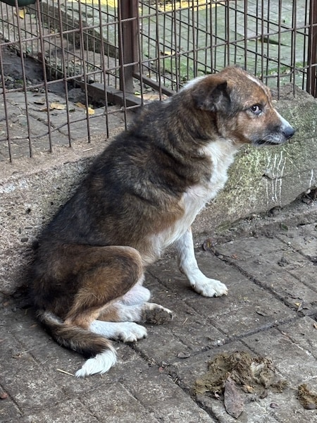 Unser zurückhaltendes Dreibeinchen MIAN wollte bei unserem Besuch leider überhaupt nichts von uns wissen… Wir haben ihn durchgehend nur in der Hütte erlebt und dort hat er sich nicht für eine Sekunde herausbewegt. MIAN scheint Menschen absolut nicht zu vertrauen, kein Wunder, können wir doch nur ahnen, was dieser armen Seele bereits Schreckliches passiert ist… Vermutlich hat er bisher nur schlechte Erfahrungen mit Menschen gesammelt und ist weiterhin davon überzeugt, dass man uns nicht trauen kann. Für den hübschen, skeptischen MIAN kommen weiterhin nur Profis in Frage, die Erfahrung mit unsicher-agressiven Hunden und das nötige Wissen und Handling parat haben. Wir wünschen ihm so sehr, dass der triste Shelter nicht seine Endstation sein muss und er in diesem Leben doch noch einmal Geborgenheit erfahren darf.