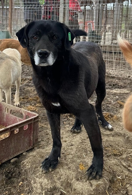 Ein komplett neu aufgenommener Kennel, in dem dieser Rüde das Sagen hat und Ressource Futter und Wasser verwaltet. Uns Menschen beobachtete er interessiert; solange wir nichts von ihm wollten, blieb er entspannt in der Nähe sitzen. Leckerchen nahm er vom Boden. Beim Näherkommen wich er aus; der Chip konnte im Vorbeigehen ausgelesen werden.