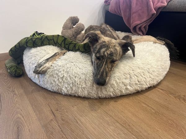 Die hübsche Mija ist eine junge, hochbeinige Hündin mit einer zarten Figur und einem großen Herzen. Sie ist junghundtypisch aktiv, verspielt und voller Lebensfreude – immer bereit, durch den Garten zu hüpfen, zu rennen oder mit ihren Lieblingsmenschen zu schmusen.