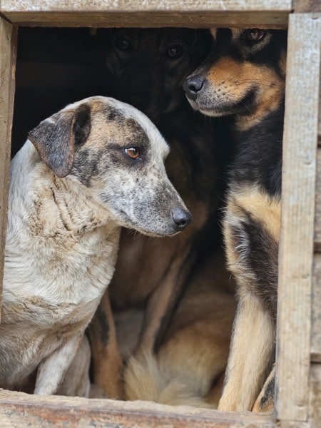 MILANA blieb während unseres Besuchs lieber in ihrer Hütte. Viel zu selten kommen Menschen zu Besuch in ihrem Kennel vorbei und so war die gesamte Situation zu ungewohnt für sie. Unsere Leckerchen fand sie dann doch ganz gut und nahm sie vom Hüttenboden. MILANA braucht erfahrene Menschen, die sehr erfahren im Umgang mit unsicheren Hunden sind und ihr die Zeit geben, die sie braucht, um Vertrauen aufzubauen.