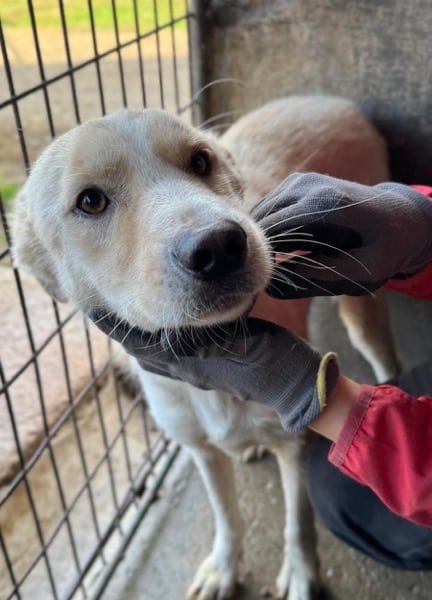 Als wir 3 Tage nach Ersterfassung den Kennel noch einmal betraten, kam MISCHA in seiner eher ruhigen Art aktiv auf uns zu und ließ sich gern von uns streicheln.