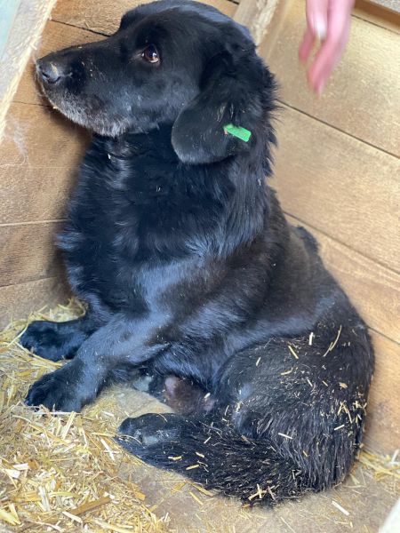 Am ersten Tag lag dieser Rüde noch in seiner Hütte – frisch kastriert und zu erschöpft, um aufzustehen. Dennoch ließ er sich dort problemlos überall anfassen und zeigte sich dabei freundlich und ruhig.