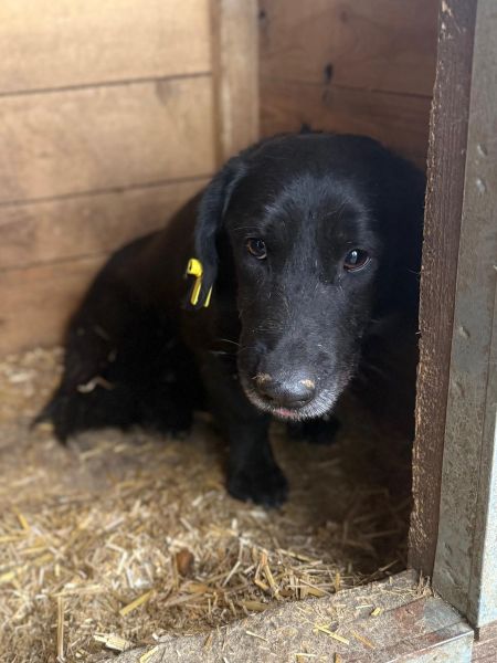 Am darauffolgenden Tag hielt er sich außerhalb der Hütte auf, weshalb wir ihn noch einmal besucht haben. Aufgrund unserer Anwesenheit verzog er sich wieder lieber in seine Hütte, ließ sich dort aber erneut gut streicheln und zeigte sich insgesamt freundlich, wenn auch noch etwas zurückhaltend. Man merkt, dass er sich Schritt für Schritt öffnet und mit der richtigen Anleitung weiter an Sicherheit gewinnen wird.