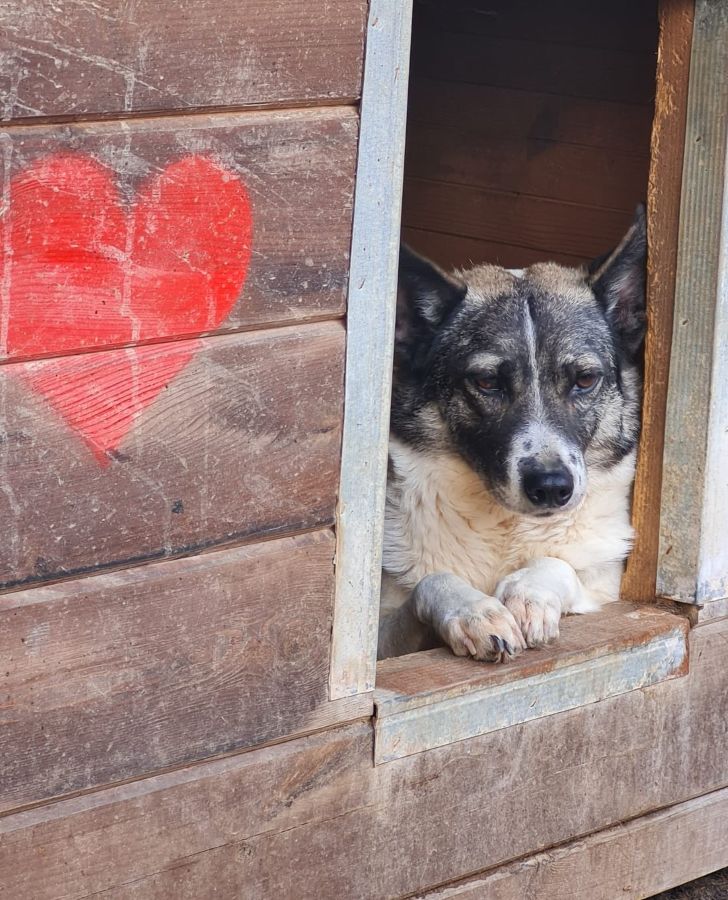 Nach acht langen Jahren im Shelter und nur sehr wenig Kontakt zu Menschen ist es kein Wunder, dass MOONY die Welt nicht mehr versteht, wenn wir uns ihr nähern. Zunächst versuchte sie uns aus dem Weg zu gehen, doch dann blieb sie in der Hütte und ließ sich sanft von uns überzeugen – endlich konnten wir sie vorsichtig streicheln.