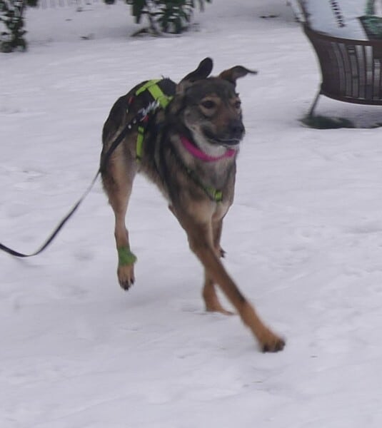 Mousy hat uns alle überrascht. Trotzdem sie von Welpe an wenig bis gar keinen Input bekommen hat, im shelter auch immer eher eine zögerliche Hündin zu sein schien, war sie mit erstem Schritt auf deutschem Boden wie ausgewechselt. Freundlich und fröhlich begrüßte sie uns Menschen und war einfach nur froh, endlich laufen, die Beine bewegen, Ruhe genießen zu können und nicht alleine zu sein. Ganz schnell hat sie die Vorzüge des Lebens im Haus schätzen gelernt; die Wärme, die weichen Körbchen, die entspannte Umgebung, nette Hundefreunde, freundliche Menschen und das verlässliche leckere Futter. Für Mousy ist das Leben jetzt schön.