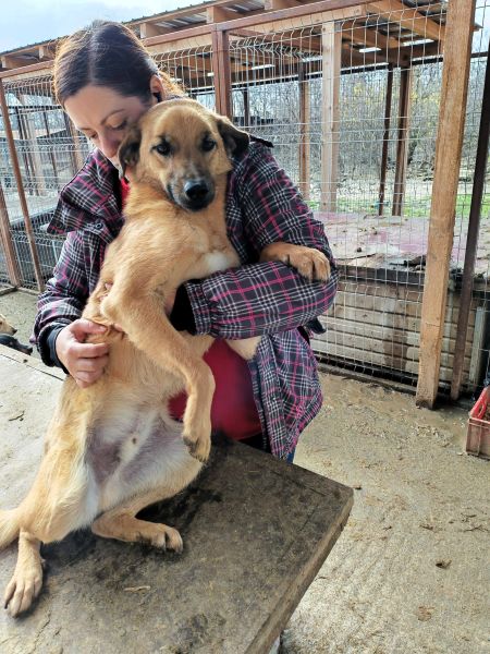 MURI ist inzwischen wieder in einen Außenkennel umgezogen. Sie war dort neugierig und kam auch mal, um an der Hand zu schnüffeln, ist aber unsicher und dann vor uns geflüchtet.