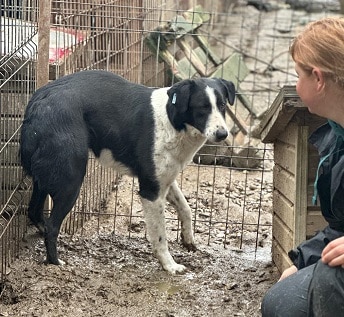 Dieser bildschöne Rüde ist schon beinahe 3 Jahre im Shelter. Warum er bisher nicht gesehen wurde, können wir nicht sagen. Doch nun wird es Zeit ihn endlich sichtbar zu machen. Er lebt gemeinsam mit einem weiteren unsicheren Rüden relativ weit hinten im Shelter. Beide scheinen sich gegenseitig zu stützen. Als wir kamen, lagen sie eng aneinder gekuschelt auf dem Hüttendach. Wir konnten uns den beiden problemlos nähern, bis wir schlussendlich direkt neben der Hütte standen. Von hier aus konnten wir Leckerchen auf das Hüttendach legen, an diesen fand er schnell Freude und warf immer wieder neugierige Blicke in unsere Richtung. Wenn man bedenkt wie selten dieser Hund wohl bisher Menschen begegnet ist, die ihm aktiv Zeit widmen, ist seine Art mit unserer Anwesenheit umzugehen wirklich ein Geschenk. Als wir den Kennel verließen, kam er sogar noch einmal mit vor bis ans Gitter und holte sich noch eine Kleinigkeit und einen letzten liebevollen Blick ab. Kurze Zeit später mussten wir einen anderen Rüden umsetzen und entschieden uns bewusst für diesen Kennel, da der Hund sehr zugänglich ist und somit als gutes Beispiel für die zwei Jungs dienen könnte. Jede Umsetzung stellt ein Risiko dar, ob die Hunde sich verstehen. Bei unserem Kontrollgang, ob alles klappt, einige Zeit später saß er bereits direkt neben dem neuen Rüden und suchte freundlich Kontakt. Man kann daher von einer guten Verträglichkeit mit anderen Hunden ausgehen, denn das ist nicht selbstverständlich. Dieser hübsche Kerl braucht Menschen mit Verstand für die unsicheren Seelen, die ihm Zeit geben, in seinem Tempo anzukommen. Er wünscht sich viele Kekse und einen weiteren Hund im Haushalt. Wer gibt ihm dir Chance sich zu beweisen und zu zeigen was in ihm steckt?
