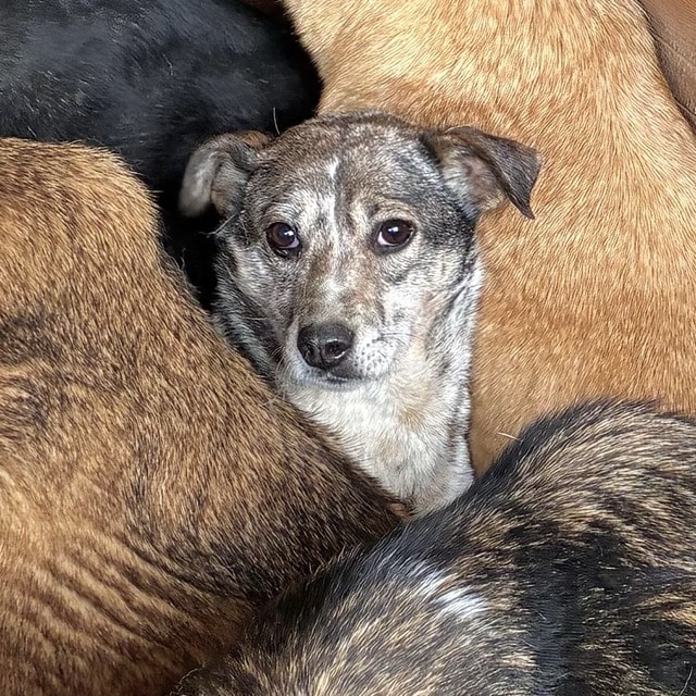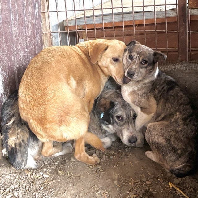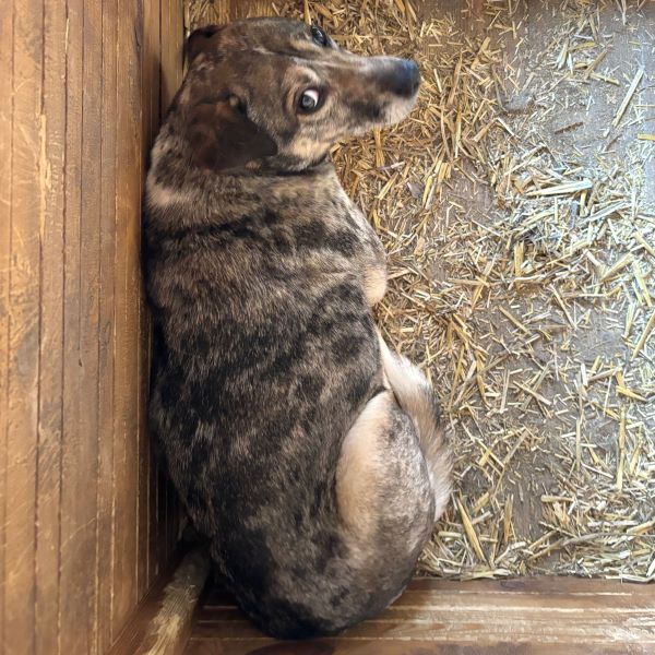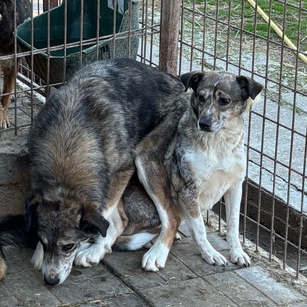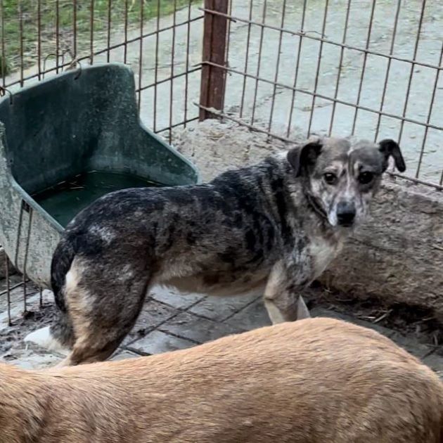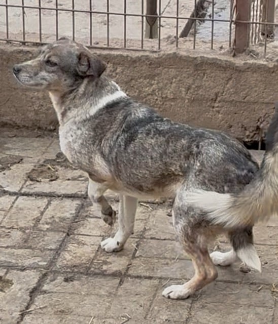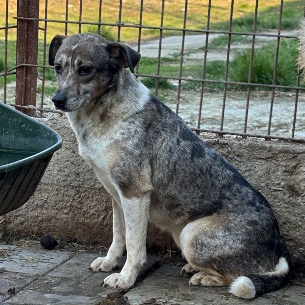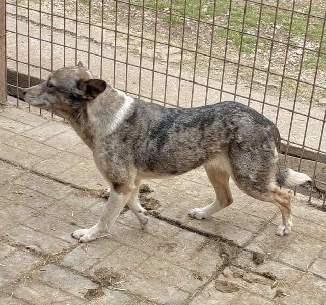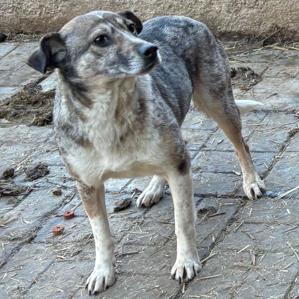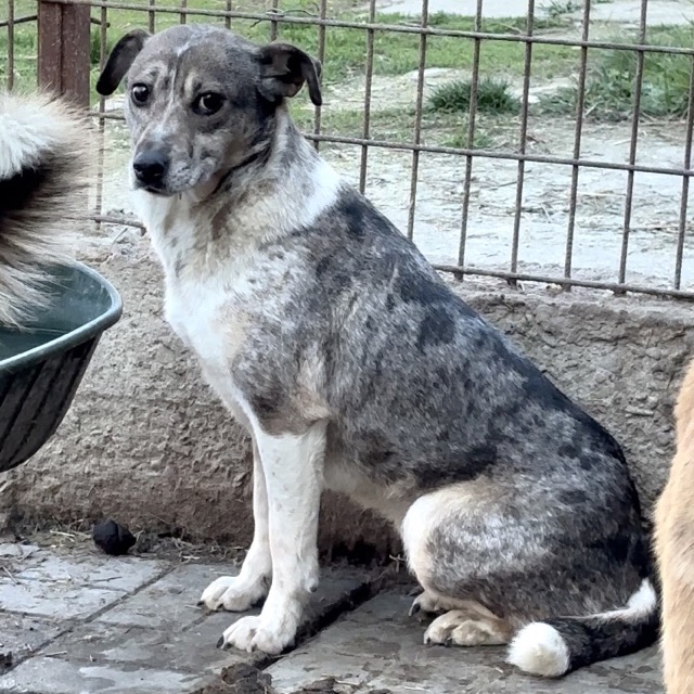 Unsere wunderhübsche NAJMA mit dem toll gescheckten Fell hat es leider nach einem Jahr im Shelter noch nicht dort heraus geschafft. Noch immer teilt sie sich den Kennel mit einer sehr unsicheren Hundegruppe und auch bei diesem Besuch versteckten sich zunächst alle in der sicheren Hütte. NAJMA kann sich dort leider kein zutrauliches Verhalten abschauen und so wich sie jeder Annäherung aus. Hier bedarf es Erfahrung, Geduld und Herzblut, um die sensible Maus an ein Zusammenleben auf der Sonnenseite heranzuführen. Doch wir geben die Hoffnung nicht auf, diese Nadel im Heuhaufen für NAJMA zu finden – Menschen, die sie an die Pfote nehmen und ihr das schöne Leben zeigen. Ein aufgeschlossener Ersthund, an dem sie sich orientieren kann, wäre ein Muss.