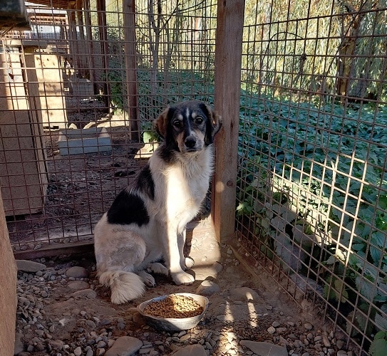 Fast hätten wir die nette Hündin übersehen, die sich vor uns in der hintersten Ecke des Kennels versteckte. So richtig wusste sie nicht, was sie mit uns anfangen sollte. Sie nahm aber gerne unsere Leckerli aus der Hand und ließ sich nach kurzer Zeit sogar vorsichtig streicheln. Sie suchte dabei aktiv unseren Kontakt. Ihr ruhiges Wesen und ihre nette, zurückhaltende Art haben uns verzaubert.