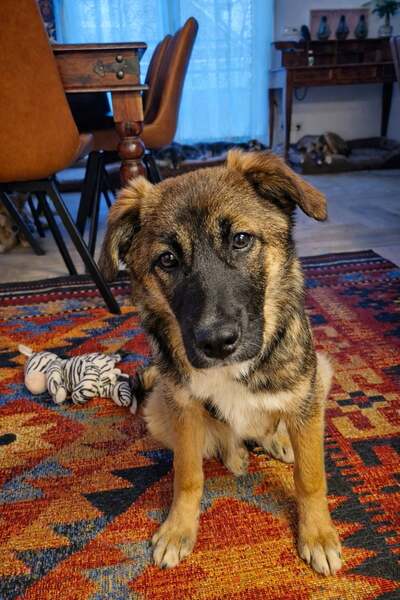 Nani ist eine junge, bezaubernde Hündin, die vor kurzem aus einem Shelter in Rumänien nach Deutschland gekommen ist und nun ein passendes Zuhause sucht. Sie zeigt sich als lernfreudiger und freundlicher Hund, der sich bereits gut im Alltag orientiert. Im Haus ist Nani bereits weitgehend stubenrein und schläft nachts zuverlässig durch. Autofahrten meistert sie ruhig und problemlos. Im häuslichen Umfeld zeigt sie sich sozial und verträglich – sowohl mit anderen Hunden als auch mit Katzen.