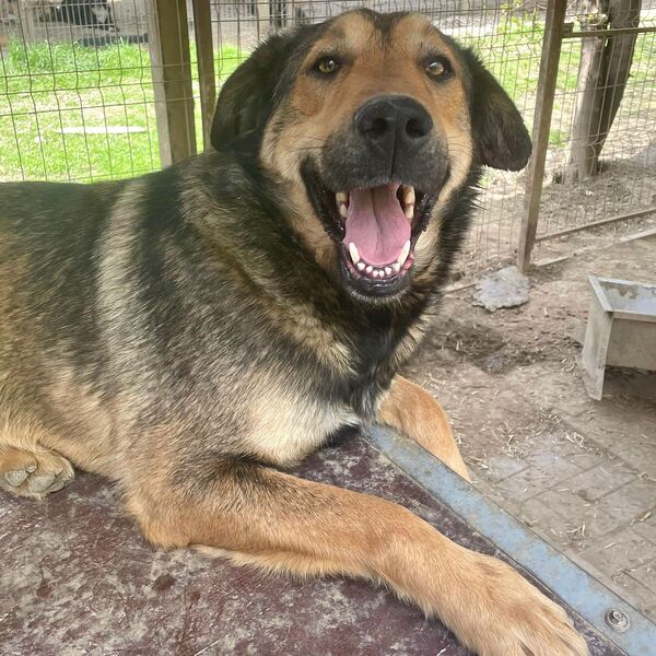 NELO lebt im Kennel aktuell in einer gemischten Gruppe, in der er verträglich scheint. Wir hatten den Eindruck, dass er der Chef im Kennel ist.
