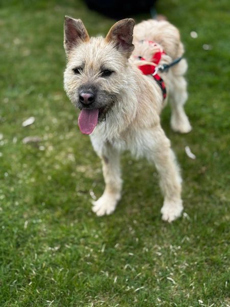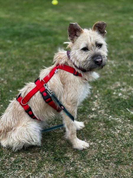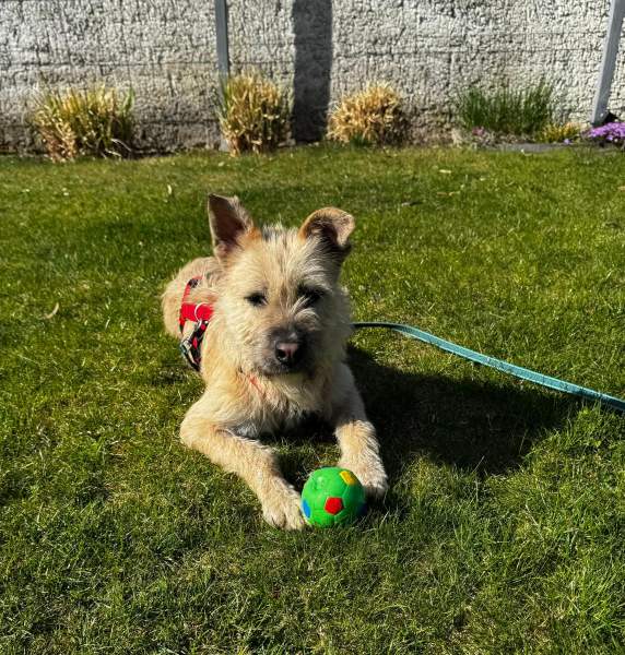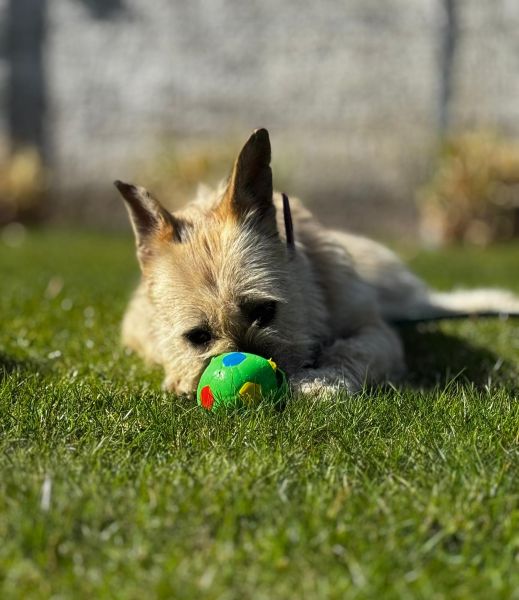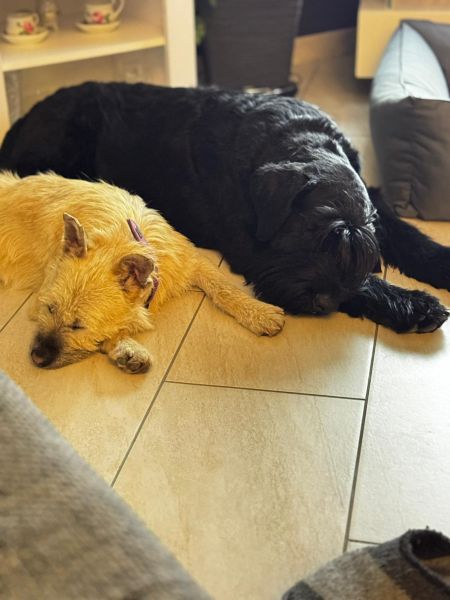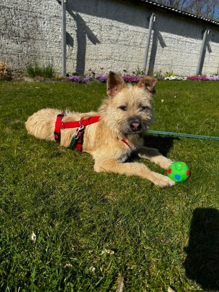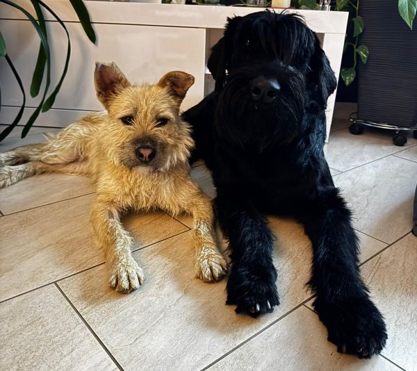 Die kleine anfängliche Unsicherheit ihm gegenüber ist sehr schnell verflogen und seitdem weicht sie ihm nicht mehr von der Seite. Sie lässt sich super von ihm leiten und tobt gern im Garten.