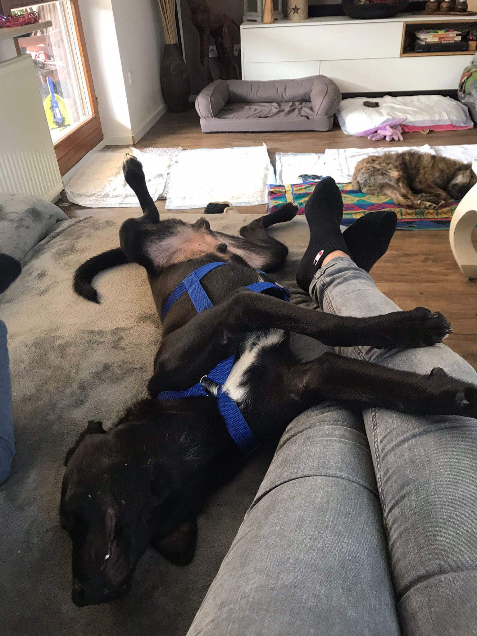 An der Leine laufe ich schon ganz toll mit und bin schon recht gut abrufbar. Ich freue mich über viel Aufmerksamkeit und Beschäftigung auch das Kuscheln finde ich klasse. Ich kann im Rudel auch schon gut alleine bleiben.