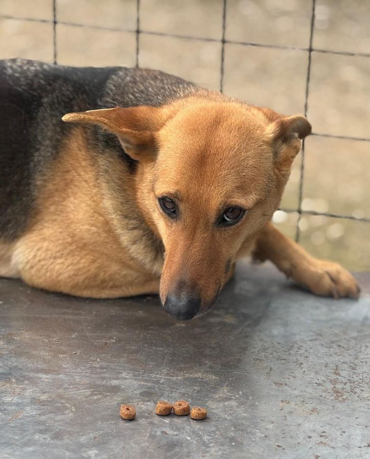 NILYO hat beginnende Hautprobleme, ist zu dünn und wirkt müde. Er ist nicht panisch, weicht aber aus und möchte nicht berührt werden.