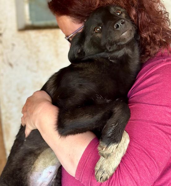 Diese kleine Hündin war am Tag unseres Besuchs gerade kastriert worden. Sie war noch entsprechend müde. Dennoch konnten wir sie gut auf den Arm nehmen. Sie wirkt verträglich und ausgesprochen nett.