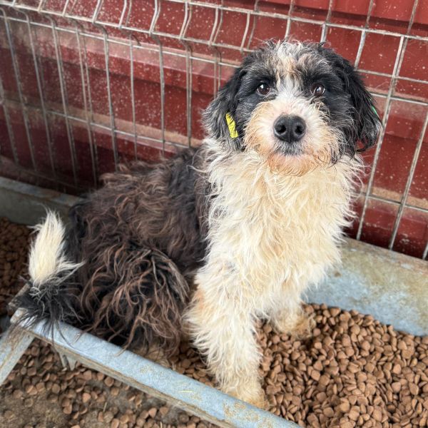 Dieser Rüde ist ein freundlicher und sanfter Kerl, der sich problemlos hochheben und überall anfassen lässt. Er zeigt sich nett und angenehm im Umgang, bleibt dabei jedoch eher zurückhaltend und beobachtet das Geschehen lieber aus dem Hintergrund. Ruhig und aufmerksam verfolgt er, was um ihn herum passiert, ohne sich in den Vordergrund zu drängen. Sein verfilztes Fell spiegelt das harte Leben im Shelter wieder – umso mehr wünschen wir ihm nun ein Zuhause, in dem er Zuwendung, Fürsorge und Geborgenheit erleben darf. Ein stiller Beobachter mit liebem Wesen. Er lebt in einem gemischten Rudel und scheint verträglich.