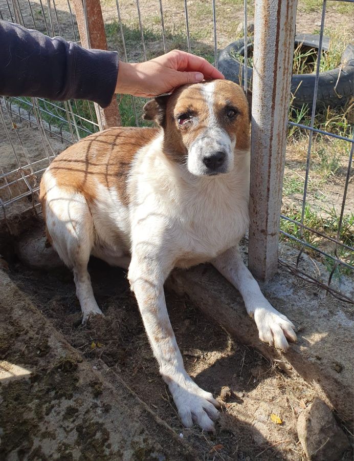 Eine alte Bissverletzung am rechten Auge ist gut verheilt, ein kleiner Schönheitsmakel bleibt, der ihn jedoch in keiner Weise beeinträchtigt.
