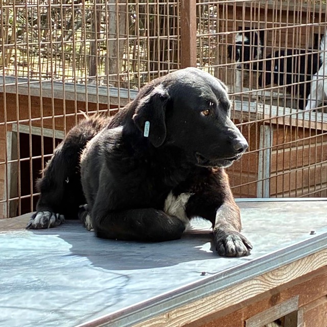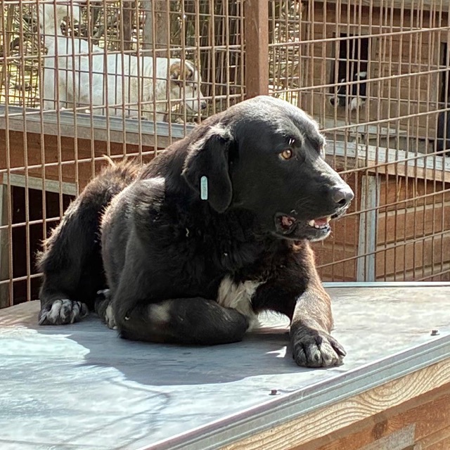 Unser PAAL schien dieses Mal wenig Lust auf Besucher zu haben. Er lag auf seinem Hüttendacht – seinem Lieblingsplatz – und beobachtete das Geschehen. Als wir uns ihm näherten, überlegte er nicht lang und sprang mit einem Satz über das hohe Gitter in den Nachbarkennel. Es lässt sich vermuten, dass er dies evtl. öfter tut, da die Hunde in der anderen Gruppe wenig überrascht reagierten. Wir sind froh, dass er sich dabei augenscheinlich nicht verletzt hat, doch solche Sprünge sind für den stattlichen Rüden absolut gefährlich und daher wünschen wir uns dringend eine Lösung. Für PAAL suchen wir sehr erfahrene Menschen, die ihn ohne Ansprüche auf der Sonnenseite ankommen lassen und mit viel Zeit zu einem Team werden wollen. Ein netter Ersthund würde ihm die Eingewöhnung sicher erleichtern.
