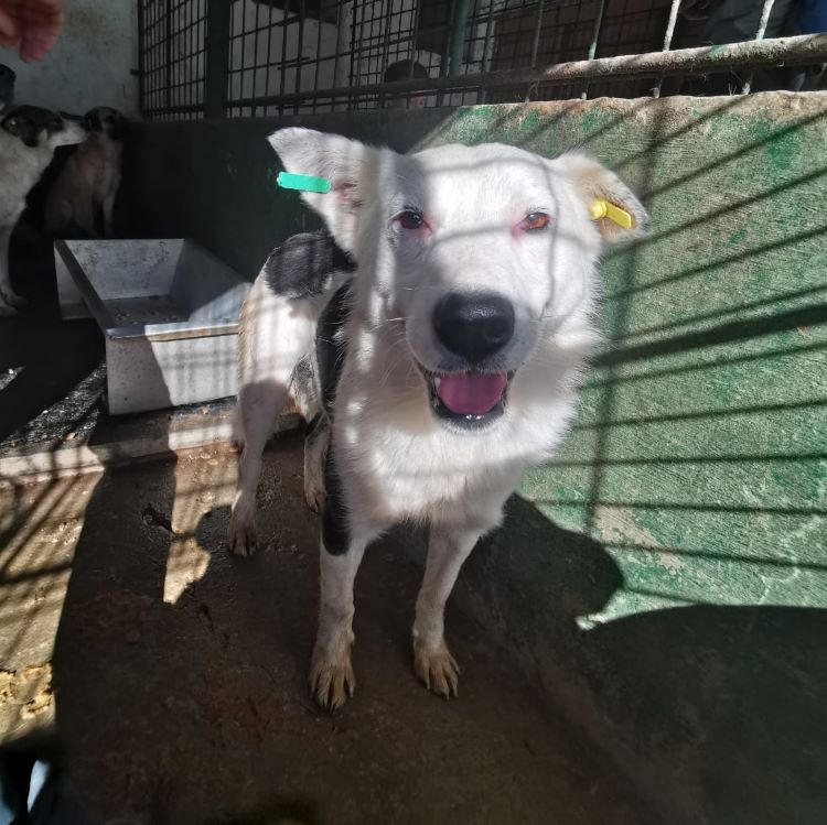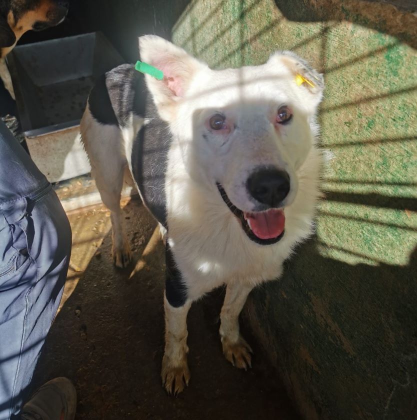Dieser wunderschöne und menschenbezogene Rüde empfing uns freundlich im Kennel. Er war neugierig, offen und nahm unsere Leckerchen aus der Hand. Wir konnten ihn gut anfassen und streicheln. Dabei wirkte er zeitweise etwas unsicher, was jedoch auch der Situation vor Ort geschuldet sein kann. Unsere Aufmerksamkeit als auch unsere Leckerchen wollte er nur ungern mit den anderen Hunden im Kennel teilen. Deswegen könnten wir uns vorstellen, dass er auch als Einzelhund glücklich sein kann.