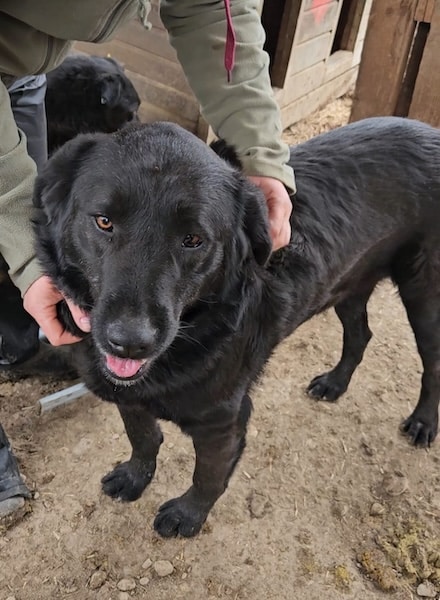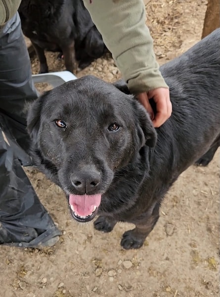 PARA MI – unsere schwarze Schönheit. Sie begrüßte uns überschwänglich, als wir den Kennel betraten. Die erst ca. 1,5-jährige Hündin hat fast ihr komplettes Leben schon in Bucov verbracht. Trotzdem ist sie gut gelaunt und sucht aktiv den Kontakt zu uns Menschen. Sie ließ sich gerne und ausgiebig streicheln und konnte dies auch richtig genießen.