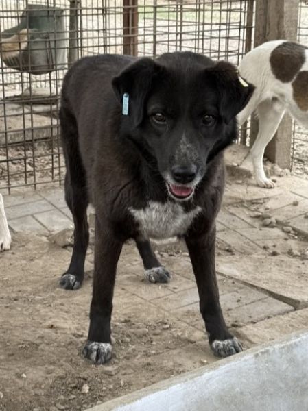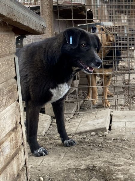 Diese Hündin zeigte sich bei unserem Besuch zurückhaltend, gleichzeitig aber neugierig und aufmerksam. Sie traute sich nicht so recht in unsere Nähe, beobachtete uns jedoch sehr genau und wirkte dabei hin- und hergerissen. Leckerli nahm sie vom Boden, war dabei immer auf der Hut, öffnete sich aber wieder schnell. Sie orientiert sich deutlich an den anderen Hunden in ihrem Kennel, sie scheinen ihr auch Sicherheit und Mut zu geben.