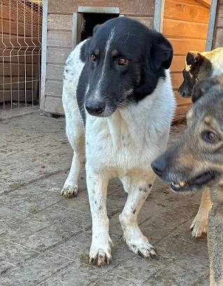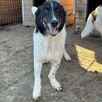 PAULO weicht uns Menschen bei Annäherung lieber aus. Die mitgebrachten Leckerli hingegen findet er sehr interessant und sammelt sie gern vom Boden mit entsprechendem Abstand zu uns auf. In seinem Kennel scheint er sich gut mit den anderen Hunden zu verstehen.